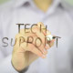 Man, Businessman, entrepreneur, freelancer, software engineer, programmer writes on transparent wall : Tech Support