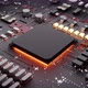 Technology Concept. Circuit Board with CPU Processor Microchip. Seamless loop 4k turntable rotating