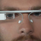 Macro shot of man focused on smart head-mounted computer prism display turning to look in camera and smiling