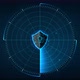 Internet technology cyber security concept of protect and scan computer virus attack with Shield icon on digital blue realistic radar with targets on monitor in searching background.seamless loop animation. 4k