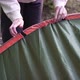 Tent setup, close-up. Camping in the forest. Activities, hiking and trekking.