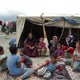 Poor immigrant family Plateau witch camp. Slum poor and happy family