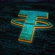 Tether stablecoin blockchain crypto currency and USDT digital money colored symbol concept. Network, cyber technology and computer background abstract 3d.