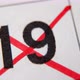 The 19st number in the calendar is crossed out with a red cross in a macro on a white sheet. Calendar for plans, notes, meetings. Business calendar. Marker for notes in the calendar