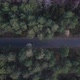 Flying, tracking the drone behind a white van, along a forest road with a bicycle path with a speed limit of 20 km. High quality 4k footage