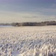 The first snow on an agricultural field with a birch grove and a house on a sunny day. Krimulda, Latvia
