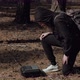 Hacker-a terrorist sets off a bomb in the forest. Man uses digital technology in nature. Geolocation.