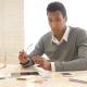 Young Creative Black Man thinking abut new project at Working in Office