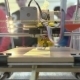 Front look at 3D printer with students in background looking at the printer