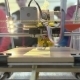 Front look at 3D printer with students in background looking at the printer