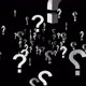 Camera moving through question marks on an alpha channel background, seamless loop in 10 seconds.
