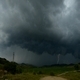 Thunderstorm. Emergence of storm. Nature landscape. Dark clouds wind and thunder lightning.