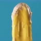 Time laps. Bright Yellow ice cream melts quickly on a blue background