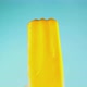 Time laps. Bright Yellow ice cream melts quickly on a blue background