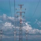 Electricity pylons cloud timelapse nature energy station electric poles the background of beautiful cloudy sky. Electricity station electric power plants and time lapse of high-voltage power lines.