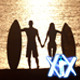 Surfers at the beach. Sunset time clips. Full HD1080p shots.