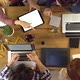 Top overhead view people group using tablet on a design project idea. Creative modern business team work meeting an at agency office. 4k indoor technology video.