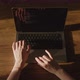 Top view caucasian woman hands scrolling on the touchpad while reviewing css code on her laptop in slow motion