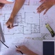 Top View Of Architects Discussing Together With Blueprint Paperwork