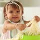 Little girl making a total mess of spaghetti