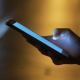 Female using touch screen on smartphone in city night. Full HD 25 fps 0:11 Sec.