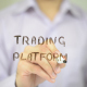 Man, Businessman, entrepreneur, stock trader writes on transparent wall : Trading Platform