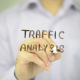 Man, Businessman, entrepreneur, freelancer, software engineer, programmer writes on transparent wall : Traffic Analysis