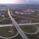 Aerial view of a freeway intersection. Automobile bridge over the automobile road. Cars driving on the highway. Narby industrial buildings and residential buildings. 13