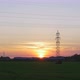 A train goes by against a beautiful summer sunset in a rural countryside setting Wide shot. Location: Lund, Sweden (Scania) in June 2015. Sustainable energy and transportation.