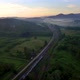 Aerial shot of moving train.