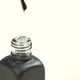Transparent varnish dropping from brush, slow motion. Hand of nail beautician holding nail polish applicator with clear dropping varnish close up.