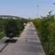 pedestrians are walking on the pedestrian path in the park. scooters and bicycles ride in the park. (drone shot at city garden park maltepe istanbul turkey 4K)