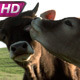 Two funny calf against grazing herd