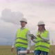 Two Electrical engineer working. Talking and working working on a laptop.Checking the power grids.