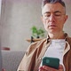 Two factor authentication. Close up portrait of mature man in eyeglasses entering security password from smartphone to website on laptop, working at home