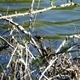 Two frogs on the surface of the water in the lake. They communicate. Creatures inhabiting reservoirs.