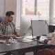 Stab shot of two IT professionals working on pc computers in contemporary office writing program codes