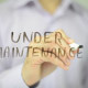 Man, Businessman, entrepreneur, freelancer, software engineer, programmer writes on transparent wall : Under Maintenance