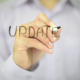 Man, Businessman, entrepreneur, freelancer, software engineer, programmer writes on transparent wall : Update