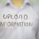 Man, Businessman, entrepreneur, freelancer, software engineer, programmer writes on transparent wall : Upload Information