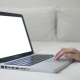 Female using computer laptop on the bed at home. Full HD 25 fps 0:14 Sec.