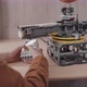 Over-the-shoulder of unrecognizable middle school student testing robotic solar system model movements using controller