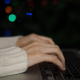 Woman typing on laptop with bokeh background. Full HD 25 fps 0:10 Sec