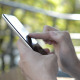 Man hands using smartphone outdoor