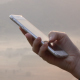 Female using touch screen on smartphone with mountain nature background. Full HD 25 fps 0:10 Sec..