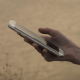 Female using touch screen on smartphone at lake. Full HD 25 fps 0:10 Sec.