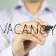 Man , businessman, freelancer writes on transparent screen ” Vacancy “