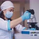 Vaccine Development. Coronavirus, COVID-19, 2019-ncov medicines research concept. Scientist in Protective Gloves and a Protective Mask, Uses a Micropipette in the Laboratory.