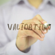Man, Businessman, entrepreneur, stock trader, analyst or banker writes on transparent wall : Validation