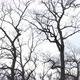 This stock footage shows vertical video of the forest with trees without leaves slow motion